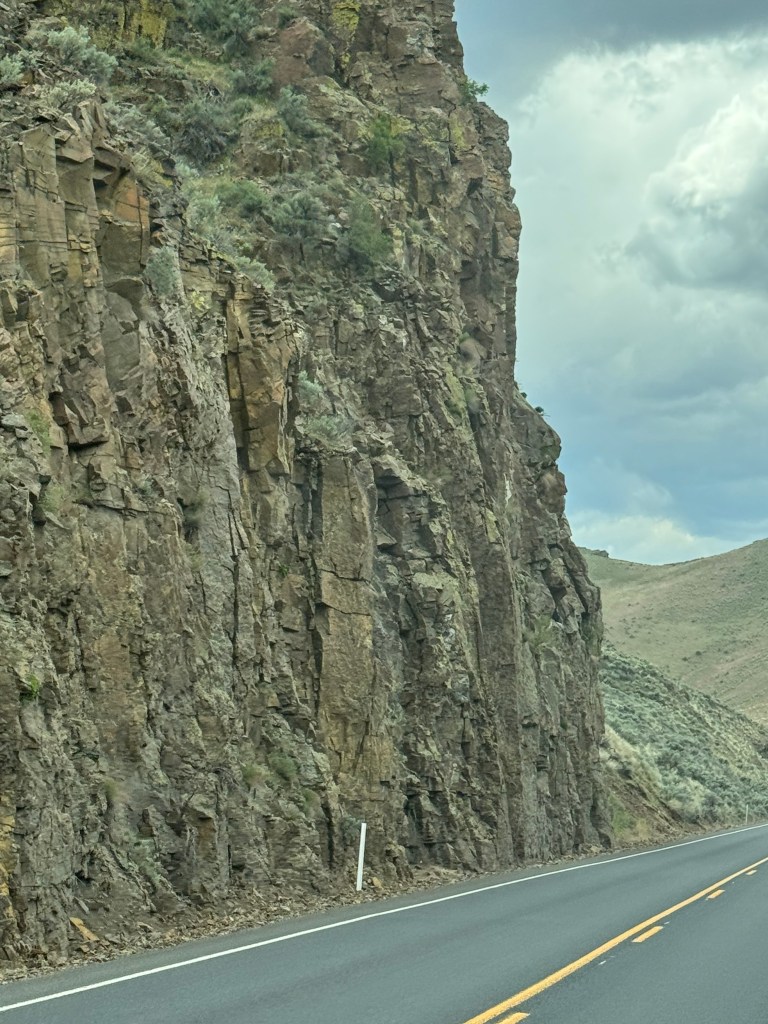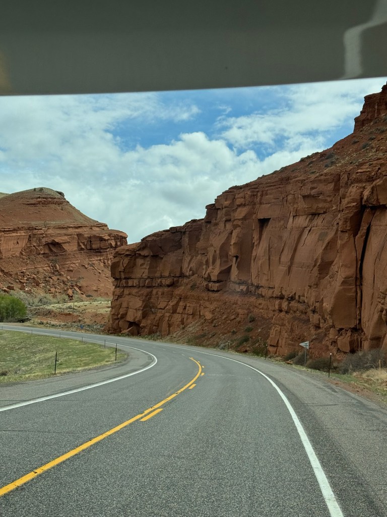 vertical sheer rock walls heading to Arches National Park